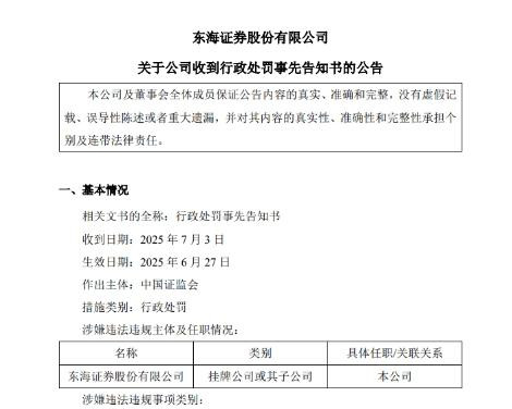 财务数据方面,2024年,东海证券实现营业收入14.69亿元,同比增长125.94%;实现归母净利润2348.71万元,扭亏为盈。此次拟对东海证券罚没的6000万元,已超过其2024年的盈利水平。